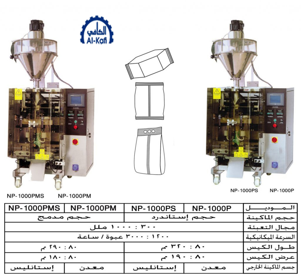 – تسلم الماكينة بمقاس رول واحد وطقم أوجرتعبئة واحد