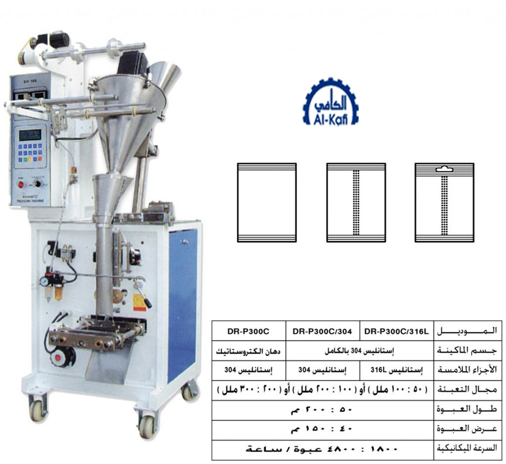 وحدة تحكم PLC بشاشة قابلة للبرمجة – التحكم فى أوجر التعبئة بواسطة إستيبر موتور – إمكانية إختيار حجم التعبئة من الشاشة – فوتوسيل – إمكانية التحكم فى طول الكيس ودرجة الحرارة وسرعة الماكينة إلكترونياً – إختيار كمية إنتاج أكياس محددة من الشاشة – طابعة اكواد وتواريخ – تسلم الماكينة بمقاس رول واحد وطقم أوجرتعبئة واحد